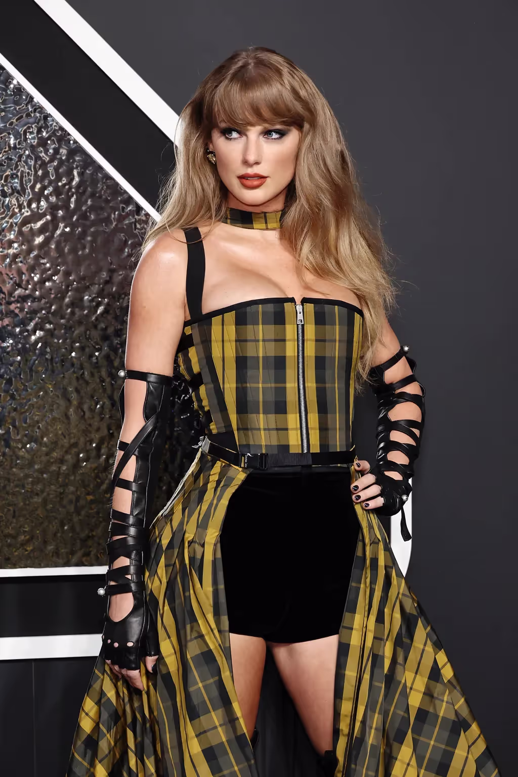 Taylor Swift turned heads in a Vivienne Westwood corset dress, perfectly complemented by thigh-high boots. Swift, who leads the night with ten nominations, brought sophistication with a modern edge. Chappell Roan, on the other hand, went for an avant-garde look with a sheer maxi dress and cloak, accessorizing with a sword that channeled a medieval warrior vibe.