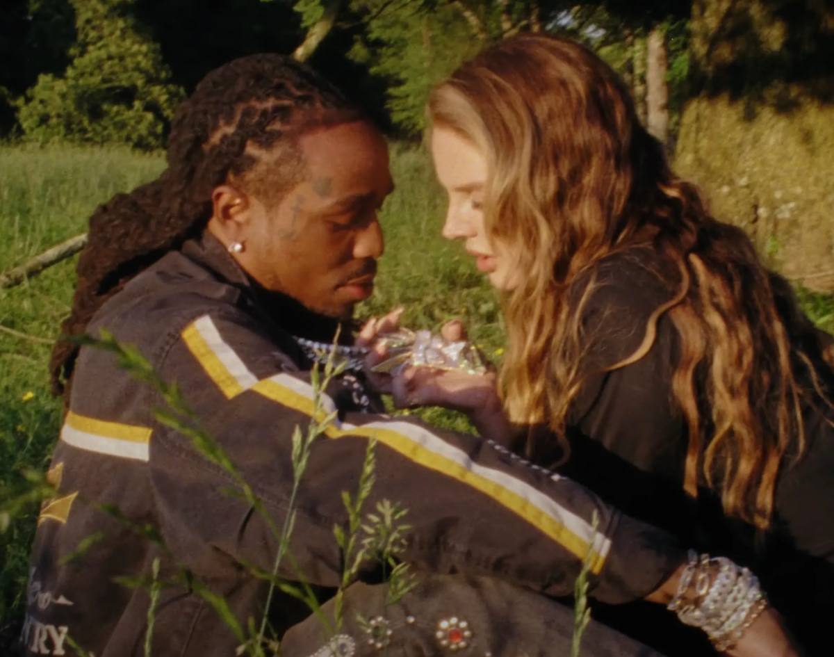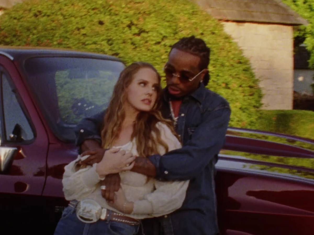 The video itself stars both musicians snuggling up and exploring the countryside. The pair sit together in a field of tall grass, where they nearly share a kiss, and also appear in front of a cottage with an acoustic guitar. In other scenes, Quavo can be seen driving, while Del Rey joins him in the passenger seat as other images of the country flash on screen.
